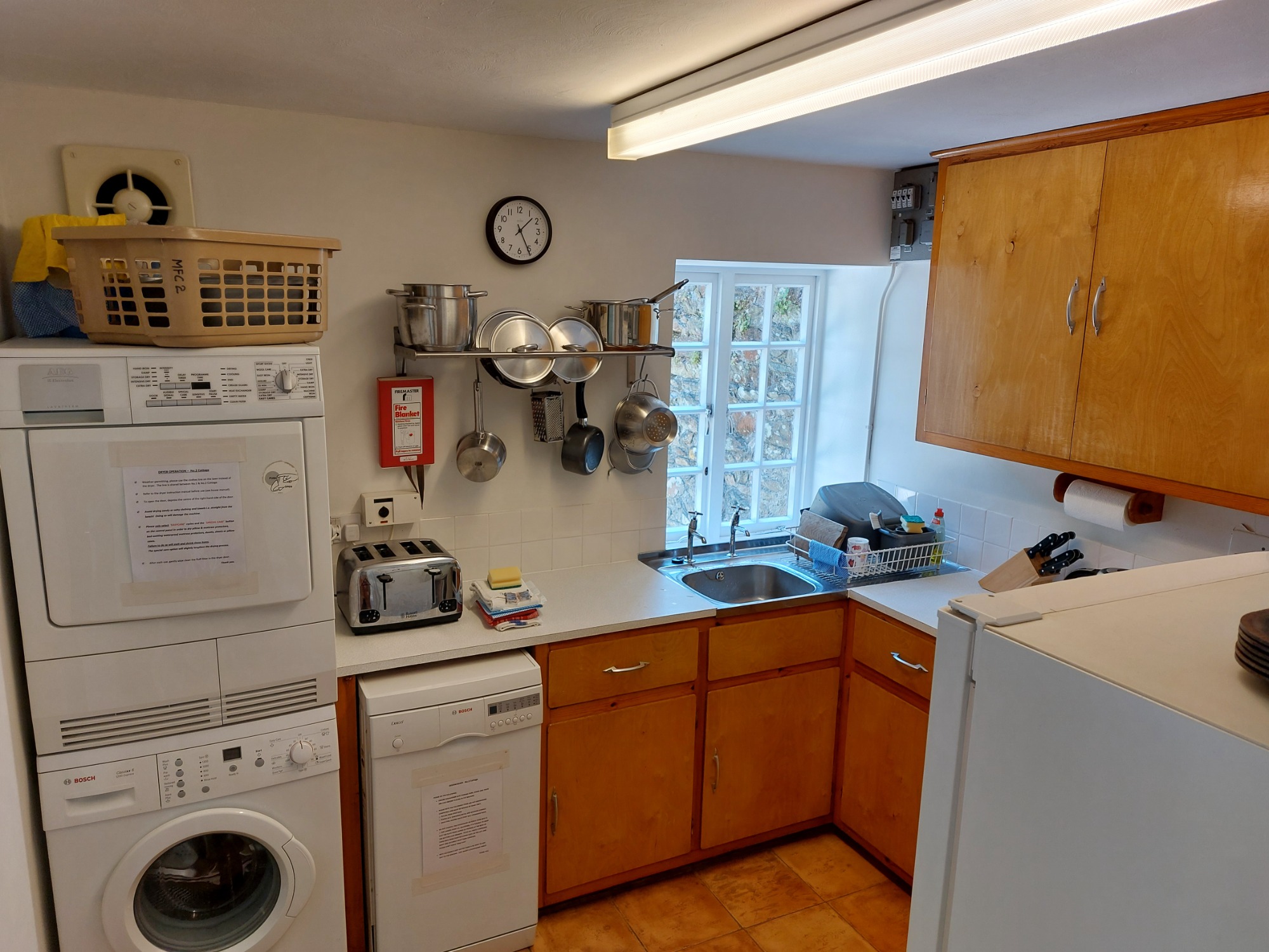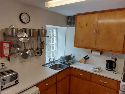 - Kitchen: electric cooker, fridge/freezer, dishwasher, washing machine, tumble dryer and a range of kitchen equipment, crockery and cutlery.
