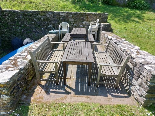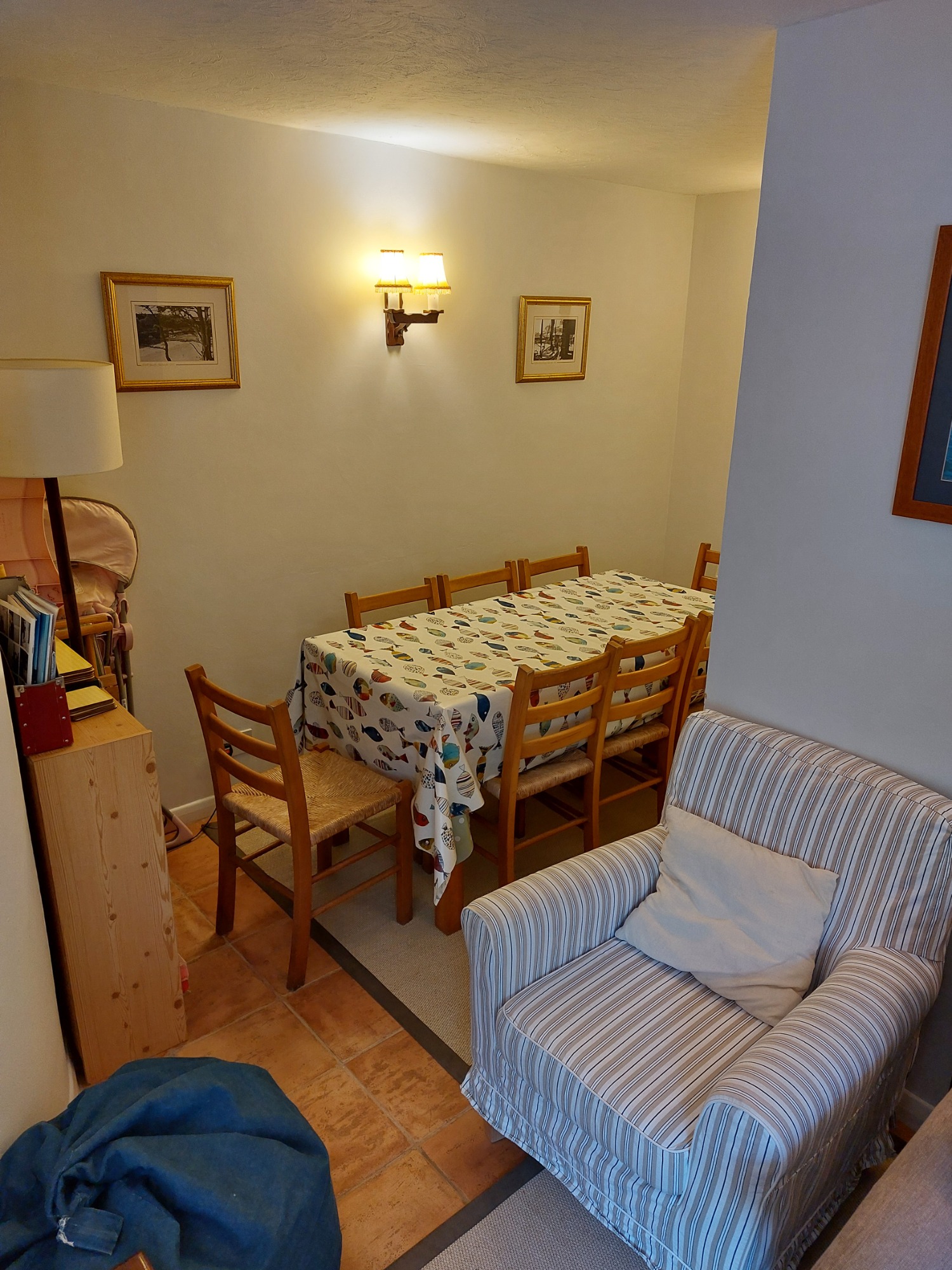 - Sitting/dining room: TV (FreeSat) , DVD player, dining table, occasional tables, sofa, easy chairs & heaters.